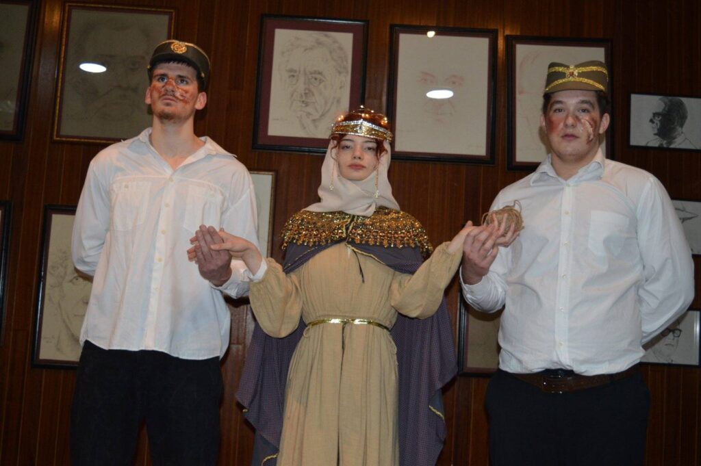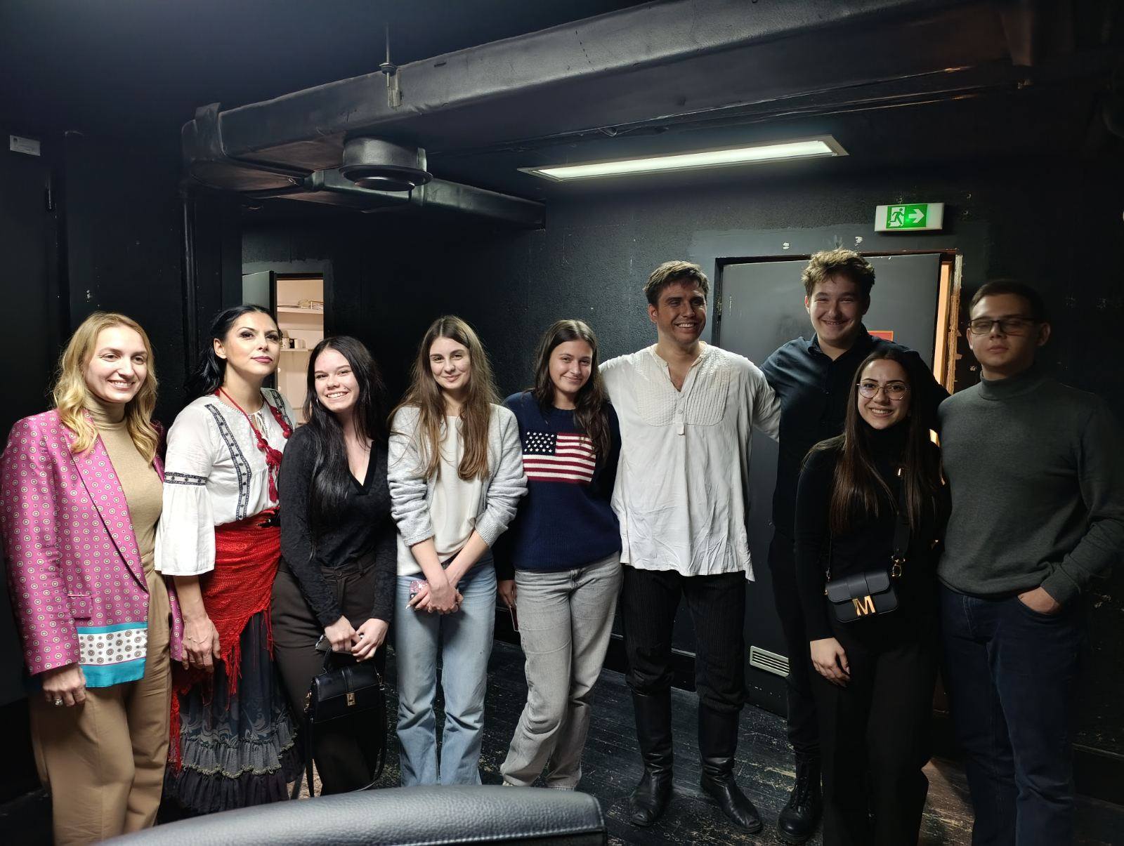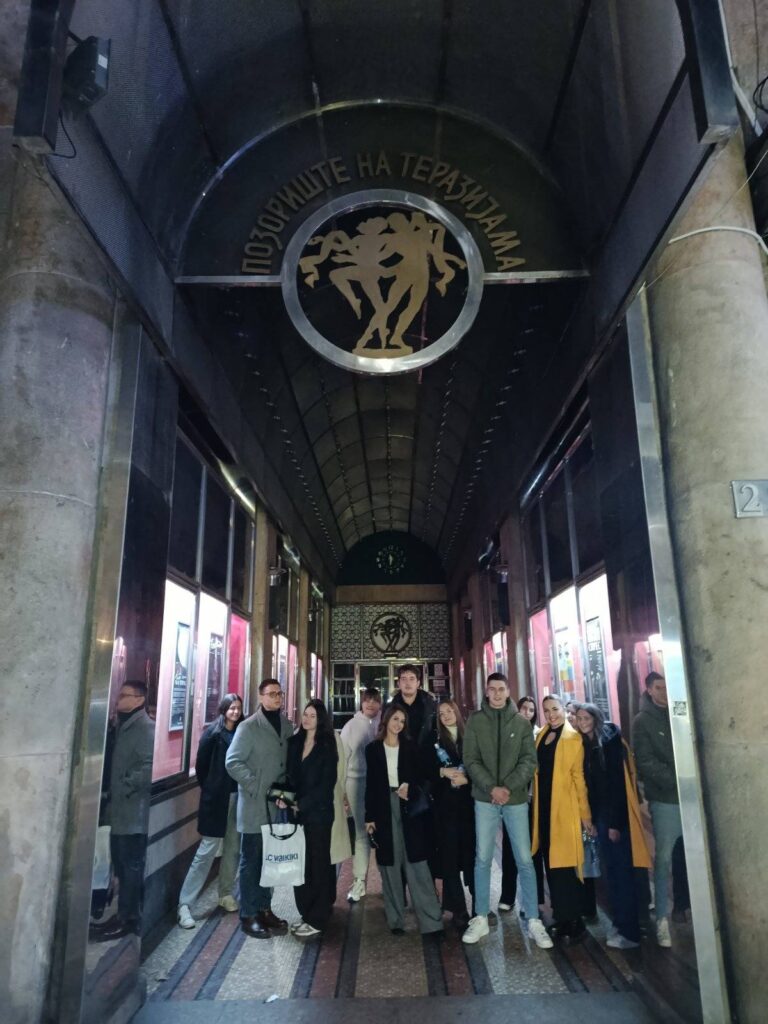 Ову радну недељу обележила је посета Позоришту на Теразијама. Наши ученици су уживали у мјузиклу „Цигани лете у небо“, инспирисаном приповедним бисерима Максима Горког. Непосредно пре одласка у позориште обрађивали смо Пушкинову поему Цигани која је покренула низ сложених питања о љубави, слободи и човековој судбини. Чланови драмске секције су имали привилегију да закораче иза кулиса и удахну мирис позоришне магије. Упознали су се са Николом Шурбановићем, главним глумцем, и Јеленом Арсић, балерином. Разговор са њима, ученицима је приближио свет позоришта из унутрашњег, стваралачког угла. Овог 19. новембра, пријатна београдска ноћ је замирисала бојама черге, оживела у страсти покрета и раскоши музике. У средишту те магије издвојили су се Лојко Зобар и прелепа Циганка Рада. Он, храбар и неустрашив, и она, поносна и страствена. Њихова љубав и судбина оставили су снажан утисак, подсећајући на младост која жели да воли отворено, снажно и без ограничења. Напослетку, опијени бојама и звуцима мјузикла, напустисмо једну (не)обичну београдску ноћ.