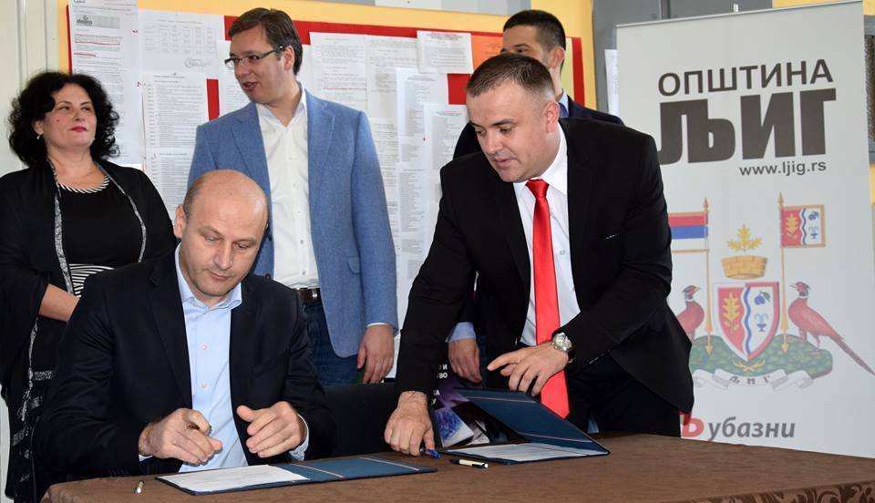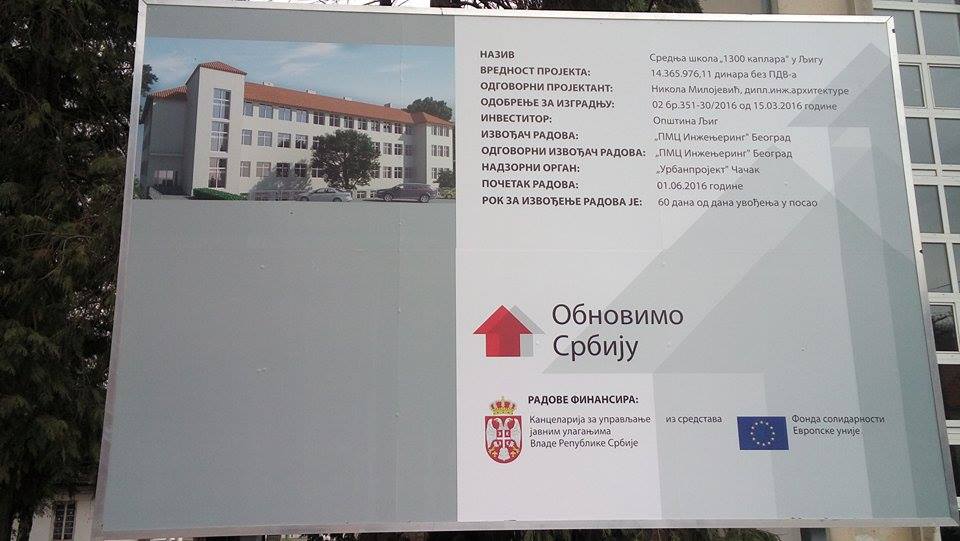 Данашњем потписивању уговора о реконструкцији СШ „1300 каплара” у Љигу присуствовали су премијер Владе Републике Србије, господин Александар Вучић, министар просвете, господин Срђан Вербић, министар омладине и спорта, господин Вања Удовичић, председник општине Љиг, господин Драган Лазаревић, директорка СШ „1300 каплара”, госпођа Биљана Јовановић, председник општине Уб, господин Дарко Глишић и директор Канцеларије за управљање јавним улагањима, господин Марко Благојевић.